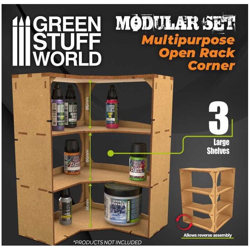 Description du produit11423Étagères ouvertes multifonctionnelles en bois MDF, parfaites pour être combinées avec les modules d'organisation de la peinture Green Stuff World. Nous recommandons l'utilisation de colle blanche pour une finition solide.