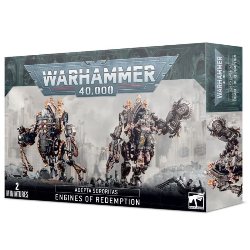 Description du produitLes Penitent Engines chargent l’ennemi sans se soucier du danger, car leurs pilotes savent que seule la mort, la leur ou celle de l’ennemi, peut leur apporter l’absolution. Les bras de ce genre d’engin sont équipés d’énormes lance-flammes qui crachent des langues ardentes alors qu’il avance implacablement. Lorsqu’il atteint l’adversaire, le cocktail chimique qui inonde les sens du pilote est modifié afin qu’ils aient l’impression que l’ennemi est à leur image. Ce dernier devient alors une réflexion insupportable du sentiment de culpabilité du pilote, qui s’y attaque sauvagement pour la faire disparaître de sa vue. Certains Penitent Engines sont dotés de scies circulaires aux dents en adamantium capables de découper le blindage d’un char, alors que d’autres broient les os et lacèrent la chair en abattant de lourds fléaux à plusieurs lests.