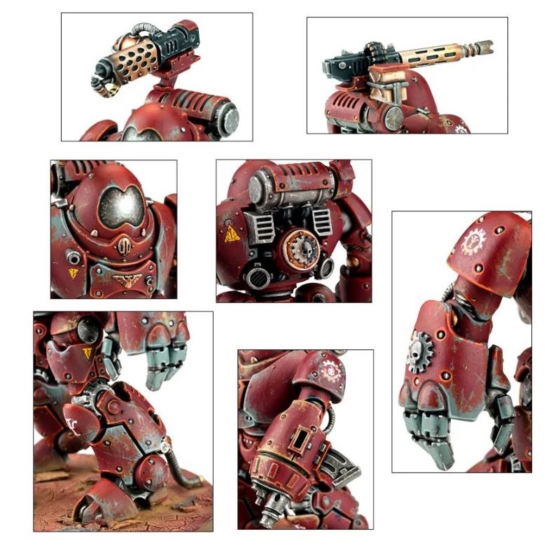 Description du produitLes Kastelan Robots sont armés jusqu'aux dents, même s'ils n'en ont pas - les options comprennent deux paires de gantelets énergétiques, deux systèmes d'éclateurs à phosphore lourds jumelés et un éventail d'armes de carapace (crémateur Incendine, ou un éclateur à phosphore supplémentaire - deux de chaque sont inclus). Le Cybernetica Datasmith est armé d'un pistolet Gamma, d'un datapic et d'un servo-bras avec une riveteuse. Un connecteur préhensile lui permet de reprogrammer les Kastelan Robots sur le terrain. Il dispose aussi de deux têtes au choix.