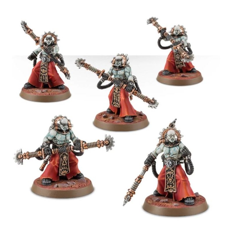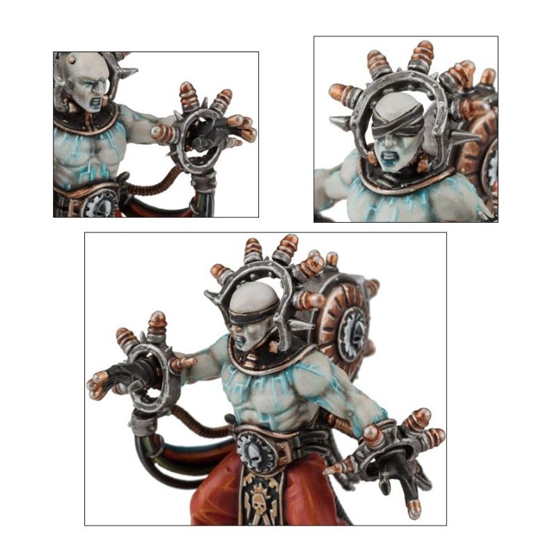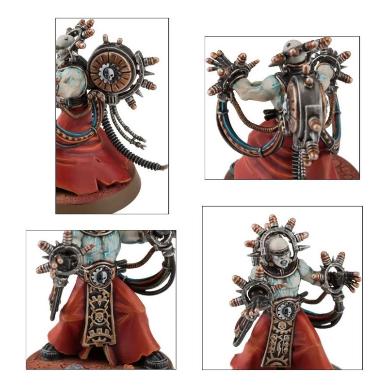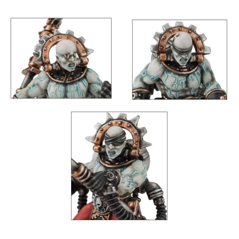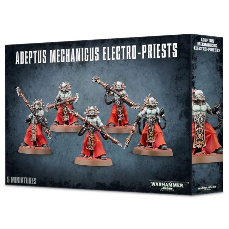 Les Fulgurite Electro-Priests sont armés de bâtons électroplaste, dont cinq sont inclus dans le kit, accompagnés de leurs générateurs dorsaux. Dix crêtes différentes s'adaptent à cinq modèles de têtes aux orbites vides, chacun possédant les traits repoussant de la transe des Electro-Priests.