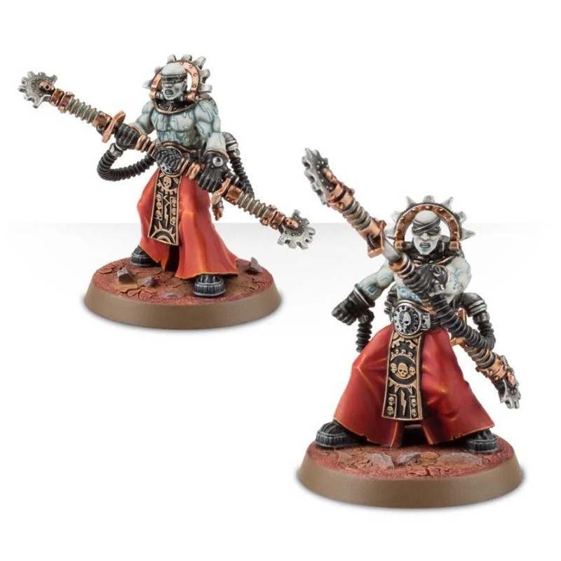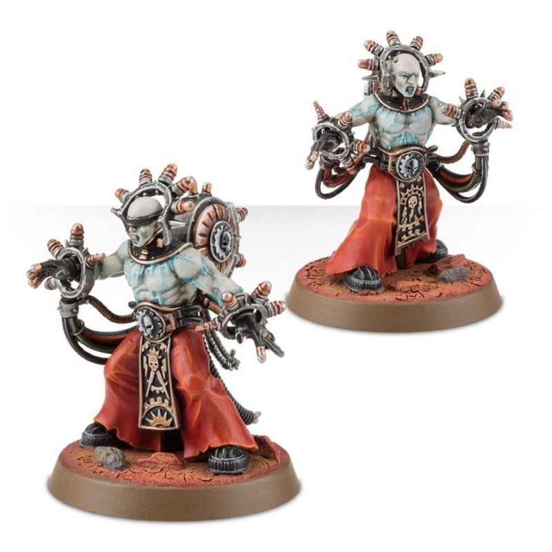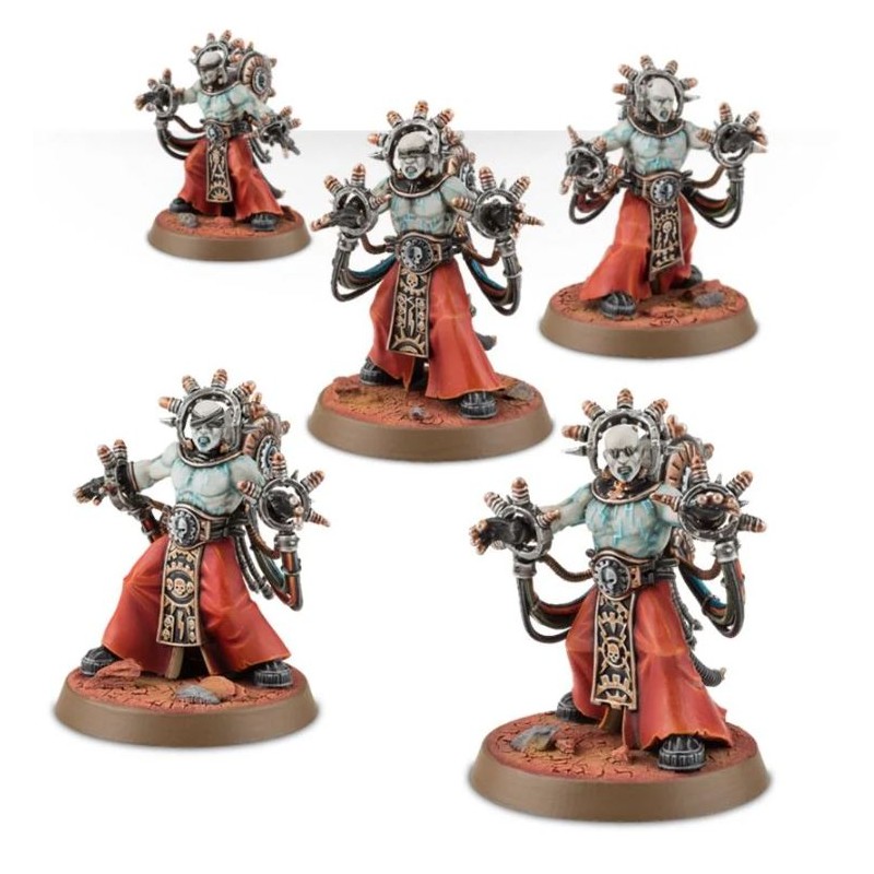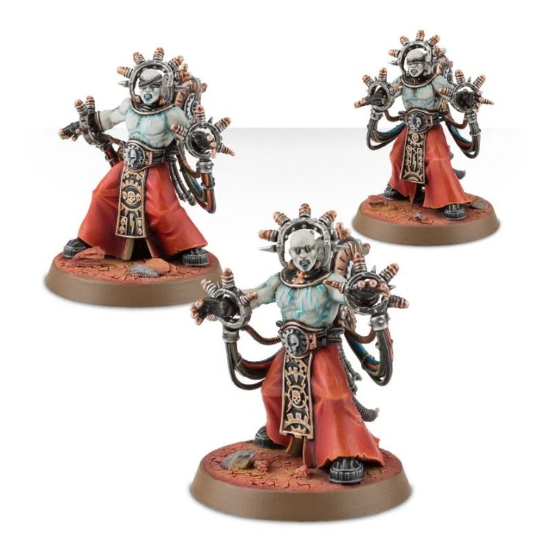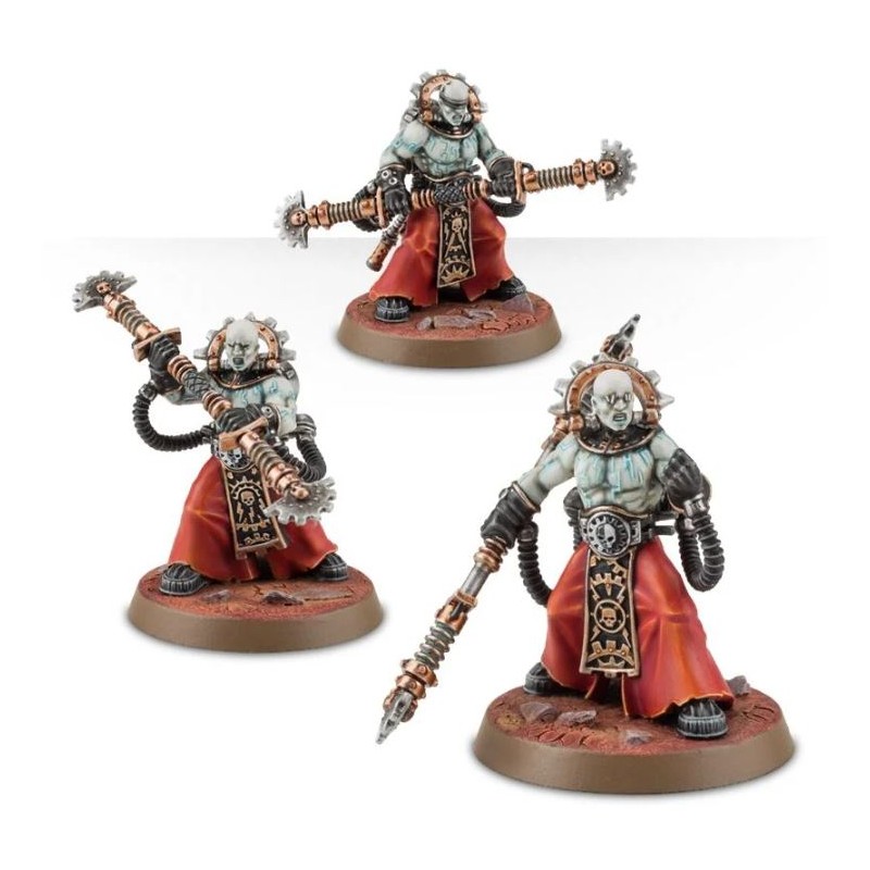 Les Fulgurite Electro-Priests sont armés de bâtons électroplaste, dont cinq sont inclus dans le kit, accompagnés de leurs générateurs dorsaux. Dix crêtes différentes s'adaptent à cinq modèles de têtes aux orbites vides, chacun possédant les traits repoussant de la transe des Electro-Priests.