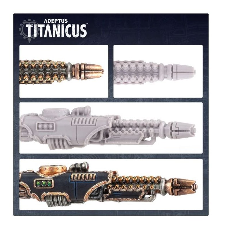 Une carte d'armes détaillant les règles d'utilisation de cette arme dans vos parties d'Adeptus Titanicus est incluse.