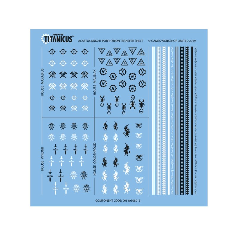- 1x Planche de Décalcos de Chevalier Acastus Porphyrion Adeptus Titanicus