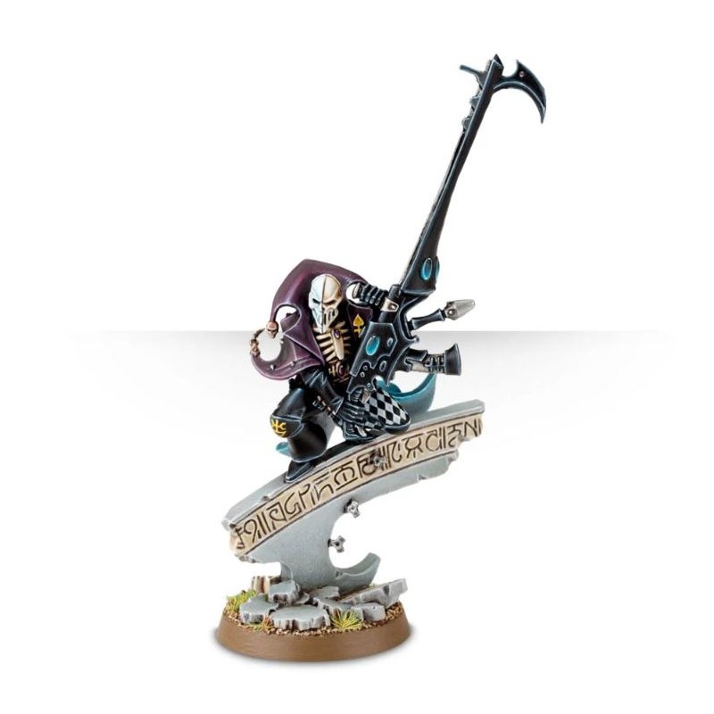 Description du produitEndossant tous les aspects du rôle de la Mort, le Death Jester est entièrement dénué de pitié. Son canon shuriken surdimensionné prélève un lourd tribut chez l'ennemi, chaque projectile imprégné de biotoxines virulentes interagissant avec le métabolisme de ses victimes pour les faire exploser violemment.