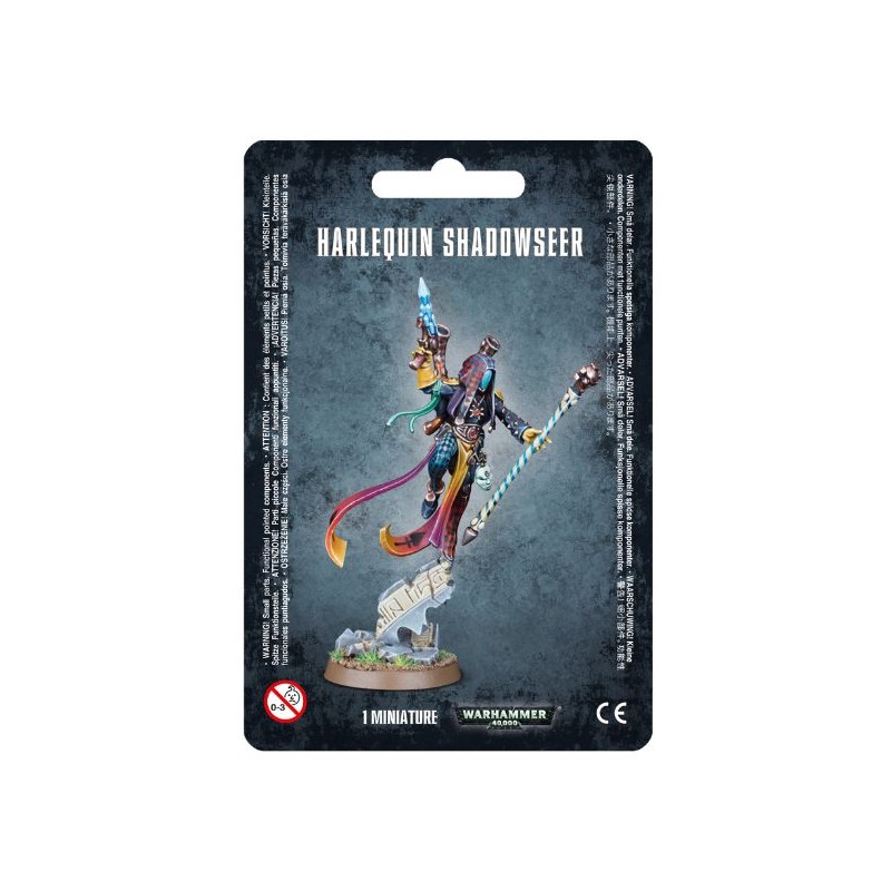 Description du produitCe kit plastique de 11 pièces permet d'assembler un Harlequin Shadowseer armé d'un pistolet shuriken, d'un bâton Mist et d'un lance-grenades hallucinogènes. Le pistolet shuriken peut être remplacé par un neuro disrupteur, également inclus. Figurine fournie avec un socle de 25mm.
