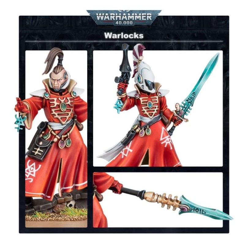 Description du produitLes prescients qui ont été entraînés en tant que Guerriers Aspects ont des facilités pour développer des pouvoirs psychiques destructeurs. Ces Aeldari sont appelés des Psycharques. Au combat, ils se regroupent souvent en conclaves pour mettre en commun leur puissance, ou bien ils prennent la tête d’escouades comme celles de Gardiens, qu’ils dirigent en première ligne. À l’aide de leurs runes de bataille, ils renforcent leur ost tout en ravageant l’ennemi.