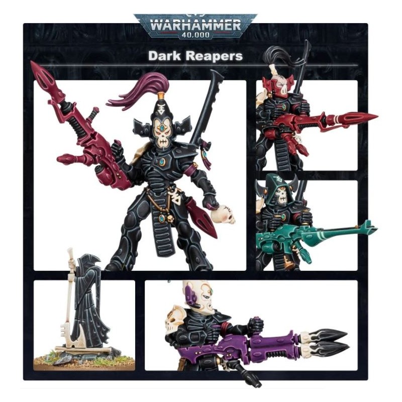 Ce kit permet d'assembler une unité de Faucheurs Noirs armés de lanceurs Faucheur, accompagnée d'un Exarque pouvant avoir un lanceur Faucheur, un canon shuriken, un lance-missiles aeldari, ou un lanceur Tempête. L'Exarque peut être assemblé avec un crâne dans sa main non directrice, et a quatre options de tête, tandis que chaque Faucheur Noir peut avoir un casque ou être tête nue. Le kit inclut aussi une petite figurine représentant un sanctuaire de Faucheur Noir.
