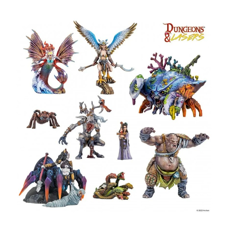 La boîte "Dungeons & Lasers - Décors - Fantasy Miniatures Set" contient 27 figurines à assembler et à peindre.