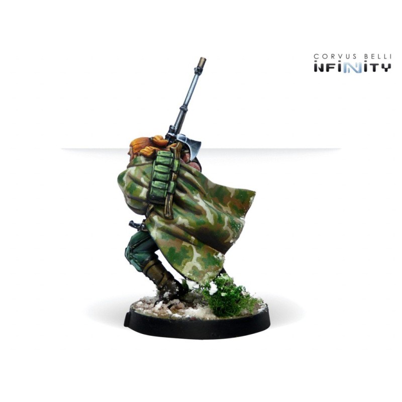 Les actions clandestines, comme pénétrer en territoire ennemi et causer des dommages maximaux sont de son ressort. Complétez votre groupe Ariadna issu du pack Opération : Coldfront avec un spécialiste opérationnel furtif qui profitera de son Camouflage et de son Déploiement Avancé pour s'infiltrer entre les lignes ennemies et générer autant de dégâts que possible.