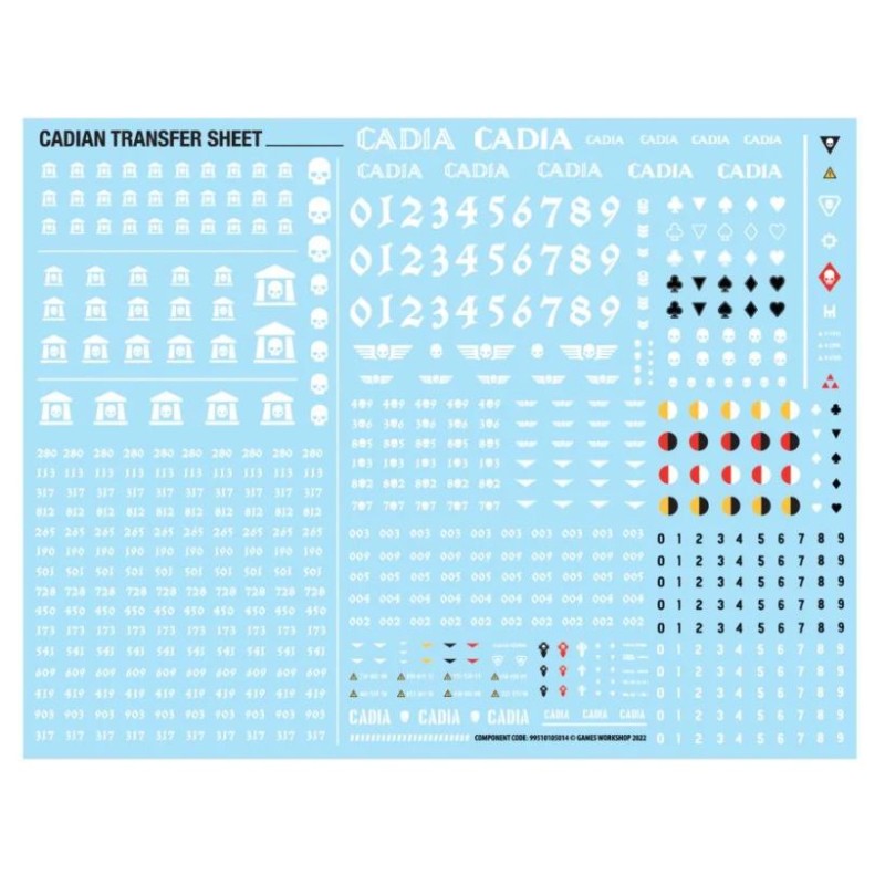 Ce kit est composé de 123 éléments en plastique et est fourni avec 5x socles ronds Citadel de 28,5 mm. Il contient également une Planche de Décalcomanies d'Infanterie de l'Astra Militarum avec 597 décalcos proposant des numéros, des marquages d'escouade et l'héraldique régimentaire cadienne. Ces figurines sont fournies non peintes et nécessitent assemblage