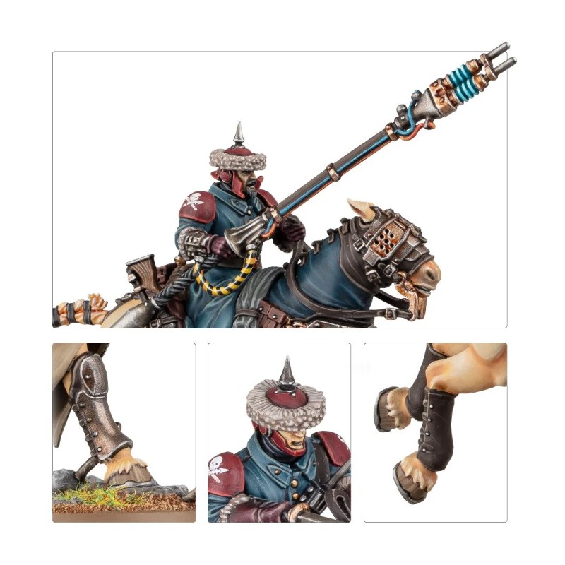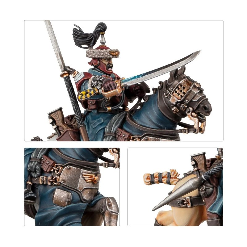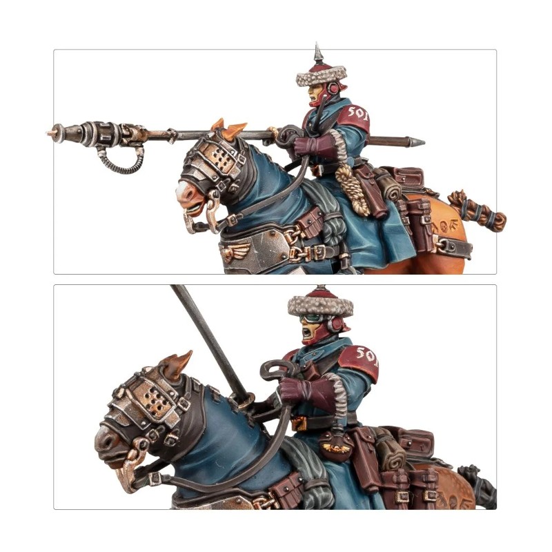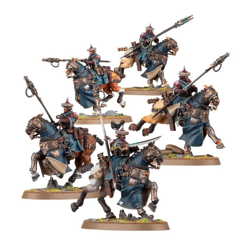 Description du produitLes Cavaliers constituent de puissantes troupes de cavalerie alignées par l'Astra Militarum. Les plus célèbres d'entre eux sont recrutés dans les steppes d'Attila. Leurs talents guerriers et leur rapidité font de ces hussards un redoutable atout, qu'ils chevauchent en tête d'un assaut ou qu'ils contournent l'ennemi. Quand le temps est venu de lancer la charge, les Cavaliers plongent leurs lances de chasse dans l'ennemi et déclenchent leurs pointes dévastatrices, conférant un impact mortel à leur assaut.