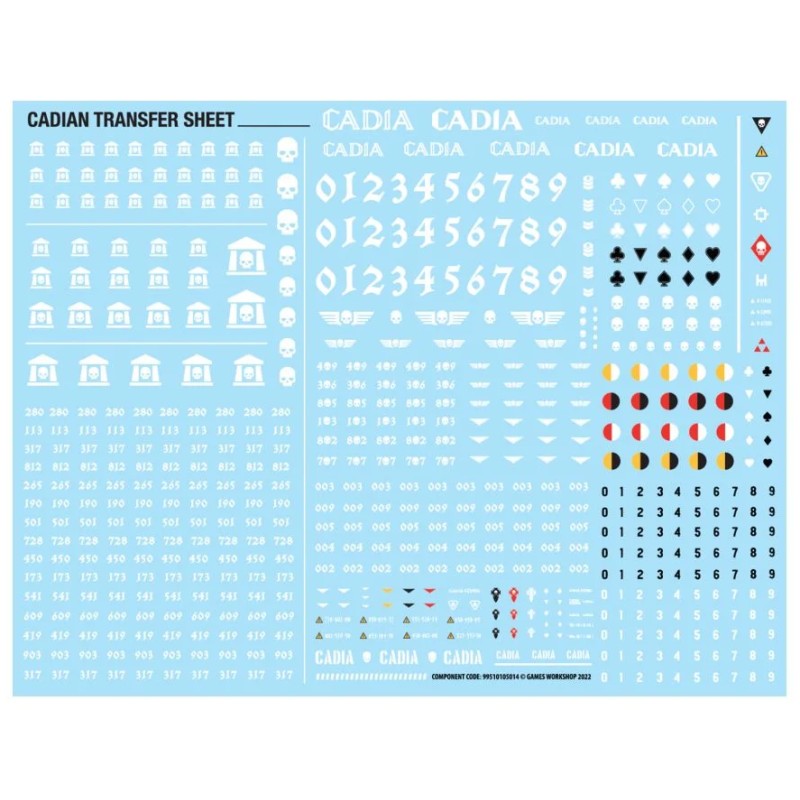 Ce kit est composé de 122 éléments en plastique et est fourni avec 5x socles ovales Citadel de 60x35 mm. Vous trouverez également une Planche de Décalcos d'Infanterie Cadienne, proposant 597x décalcos, ainsi qu'une Planche de Décalcos de Véhicules de l'Astra Militarum, proposant 475x décalcos de divers régiments. Ces figurines sont fournies non peintes et nécessitent assemblage