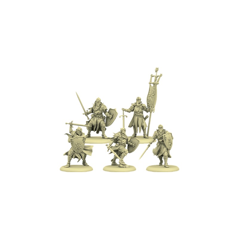 Description du produitLeur armure peut sembler décorative, mais soyez assuré que l'armure de plates des Rose Knights est forgée dans l'acier le plus solide. Ces troupes d'élite au service du roi Renly peuvent résister aux coups les plus durs que l'ennemi puisse offrir et rendre les dégâts deux fois plus importants. Leur dévouement indéfectible envers leur roi les maintient dans le combat même en cas de blessures graves. Cela dit, le centre d'une formation est l'endroit approprié pour les Chevaliers roses, et un commandant doit éviter de les laisser être flanqués ou encerclés. Mais, correctement soutenue, leur avance portera une force de Baratheon à la victoire sur tous les autres prétendants rois.