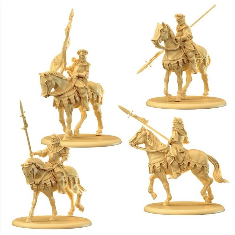 Description du produitL’alliance du Roi Renly avec la Maison Tyrell par son mariage avec Lady Margaery a mis à la disposition de Renly les célèbres cavaliers Hautjardin. Bien que leur armure ne soit pas aussi épaisse que celle de la plupart des cavaliers lourds, cela n’empêche pas les célèbres cavaliers de Hautjardin d’effectuer les charges dévastatrices qui sont la marque de fabrique de ces unités.