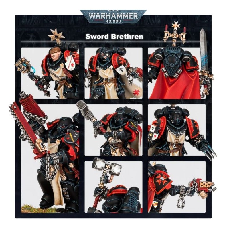 Ces guerriers vétérans se battent en employant un mélange d'armes de mêlée et de tir. Ils sont dirigés par un Castellan pouvant être équipé d'une épée énergétique de maître ou d'une tronçonneuse Astartes en main droite, et d'un pistolet bolter lourd, d'un auto-plasma, ou d'une relique en main gauche. Les quatre autres Frères d'Épée peuvent être assemblés avec différentes armes, dont un pistolet bolter lourd, un pyropistolet, un pistolet à plasma, des épées tronçonneuses Astartes, des épées énergétiques, des masses énérgétiques, une hache énergétique, une paire de griffes Lightning, ou un marteau Thunder. Ce kit inclut aussi une large gamme de têtes uniques, fleurons dorsaux, et plaques de joute.