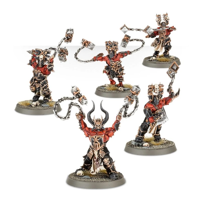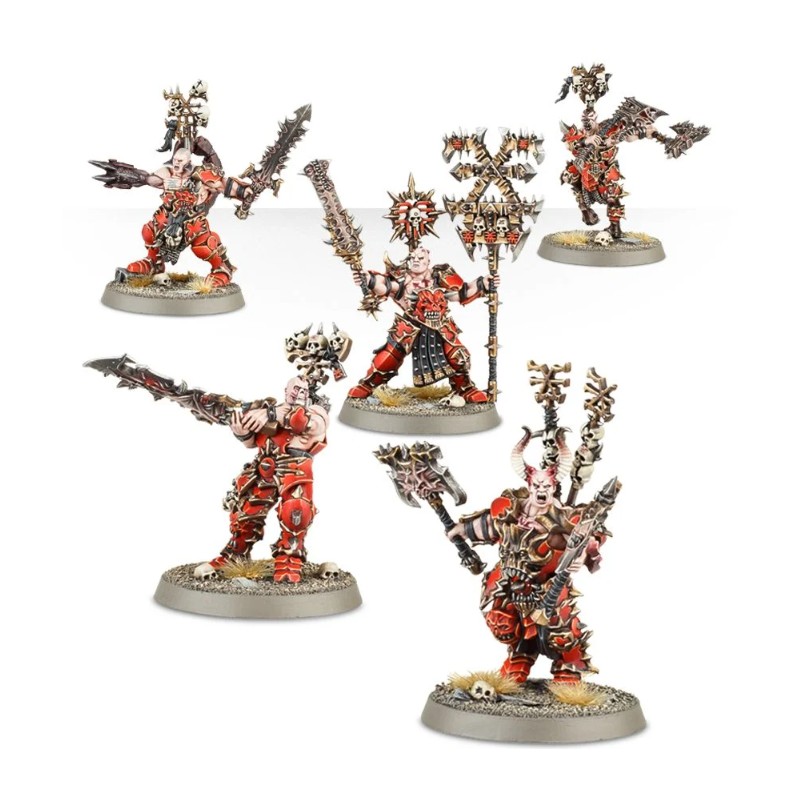 Les Wrathmongers de Khorne se composent de 97 pièces et sont fournis avec cinq socles ronds Citadel de 40mm.