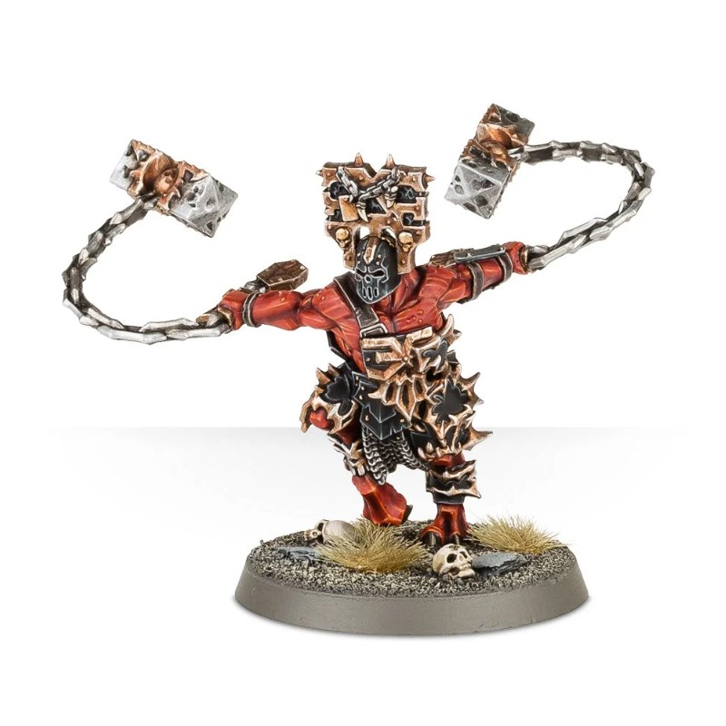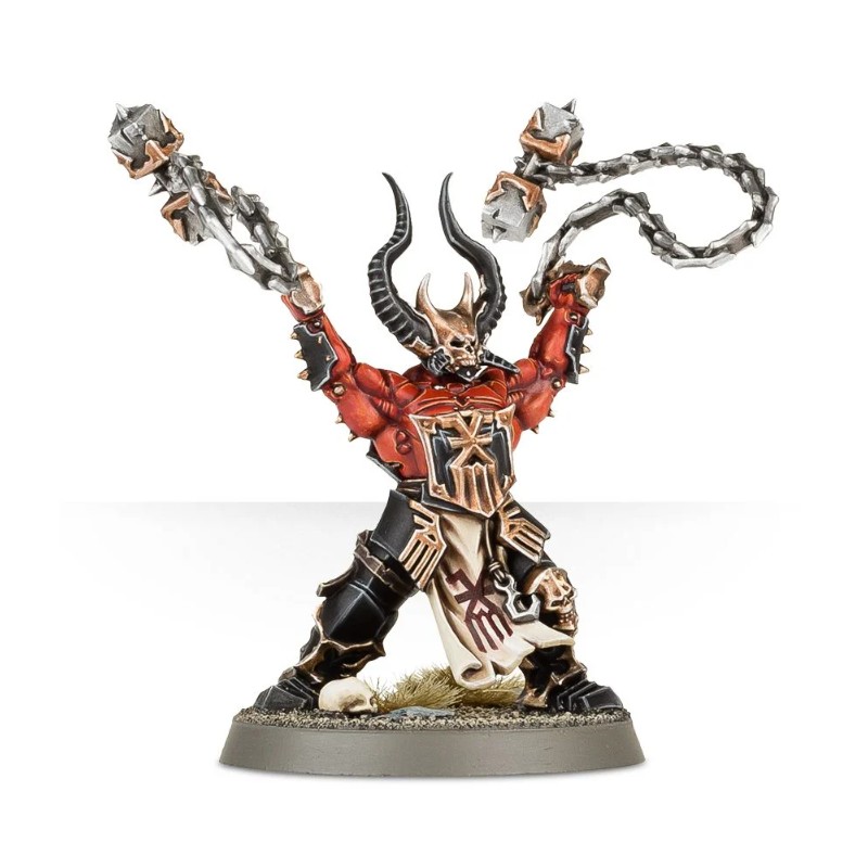 Description du produitMassacreurs fous tout autant admirés que redoutés, les Wrathmongers vénèrent Khorne avec une dévotion absolue. Nantis de la vigueur surnaturelle des démons, ils forment l'élite des tribus du Chaos et nul ne peut leur résister quand ils se jettent sur l'ennemi avec un élan d'une brutalité incroyable, tout en décrivant des paraboles sanglantes avec leurs fléaux de hargne.