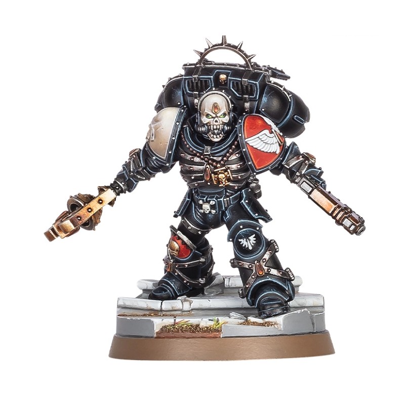 - Équipé d'un réacteur dorsal, armé du Crozius de Sang et d'un pistolet bolter Absolvor