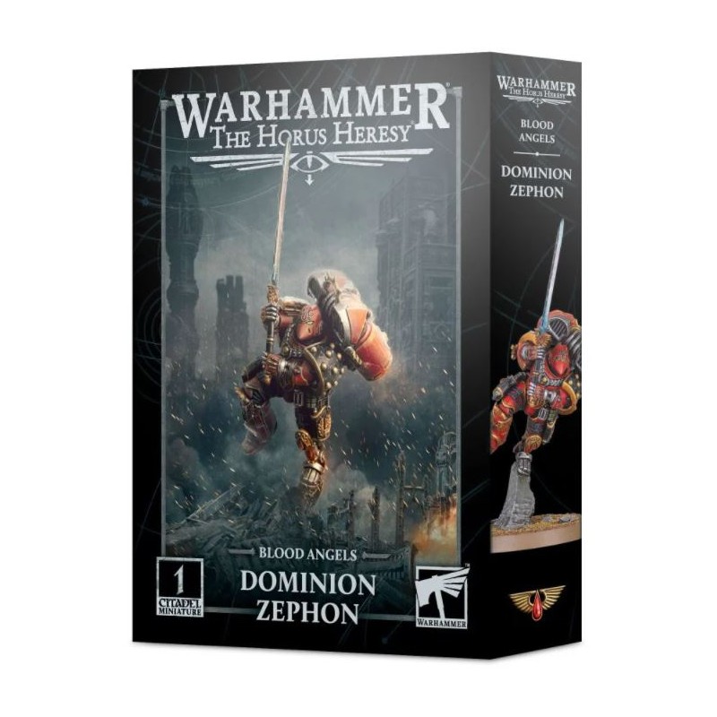 Sorti dans le cadre de Black Library Celebration 2022, Dominion Zephon se lance dans la bataille avec l'aide de pièces bioniques conçues par Arkhan Land, de son pack de sauts et d'une armure resplendissante sur le thème des Blood Angels. Il est armé de son épée à deux mains, le Spiritum Sanguis, et de deux pistolets volkite, "Lament" et "Sorrow". Ses règles sont disponibles en téléchargement gratuit sur le site Web de la communauté Warhammer, vous permettant d'ajouter le Bearer of Regret à votre hôte de combat Blood Angels.