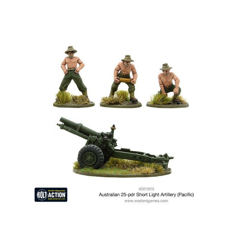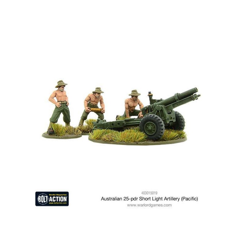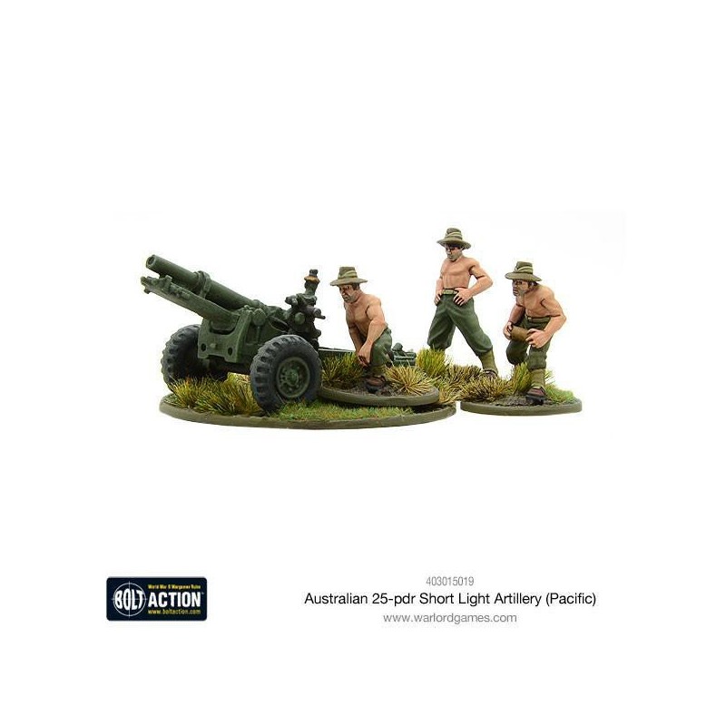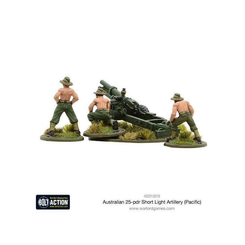 Description du produitL'omniprésent 25 pdr était la pièce d'artillerie standard de l'armée australienne dans le Pacifique, comme elle l'avait été dans le désert. Le manque total de routes et le terrain dense de la jungle rencontré sur les îles du Pacifique signifiaient que le déploiement de ces armes était extrêmement difficile.