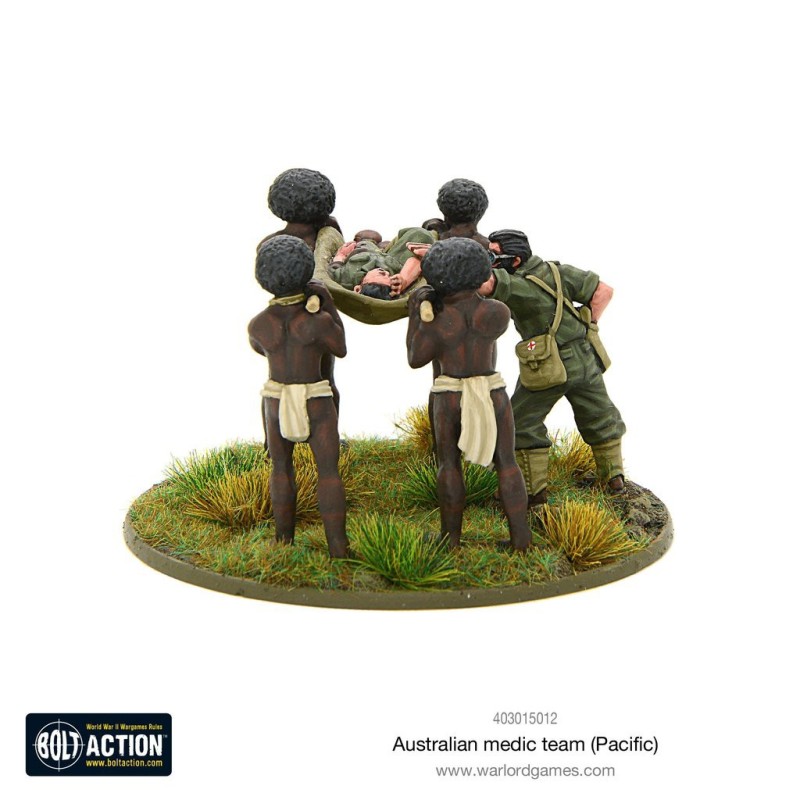Description du produitLe soutien médical dans la jungle était vital, les maladies tropicales causant plus de victimes que les tirs ennemis. Heureusement pour les Australiens, ils pouvaient faire appel aux Papous locaux pour les aider à évacuer les blessés par civière car le terrain ne permettait pas aux véhicules de jouer ce rôle.