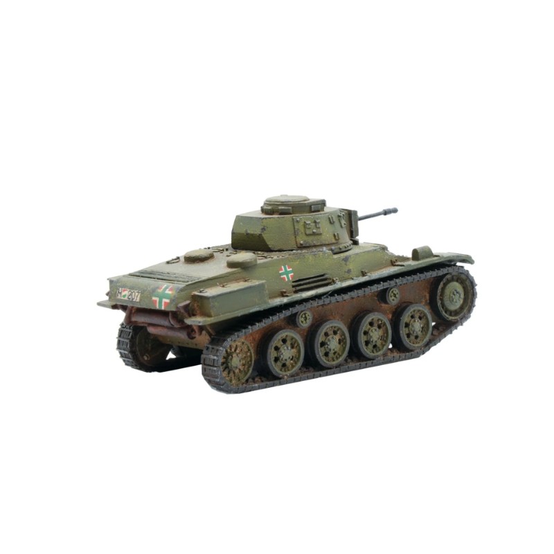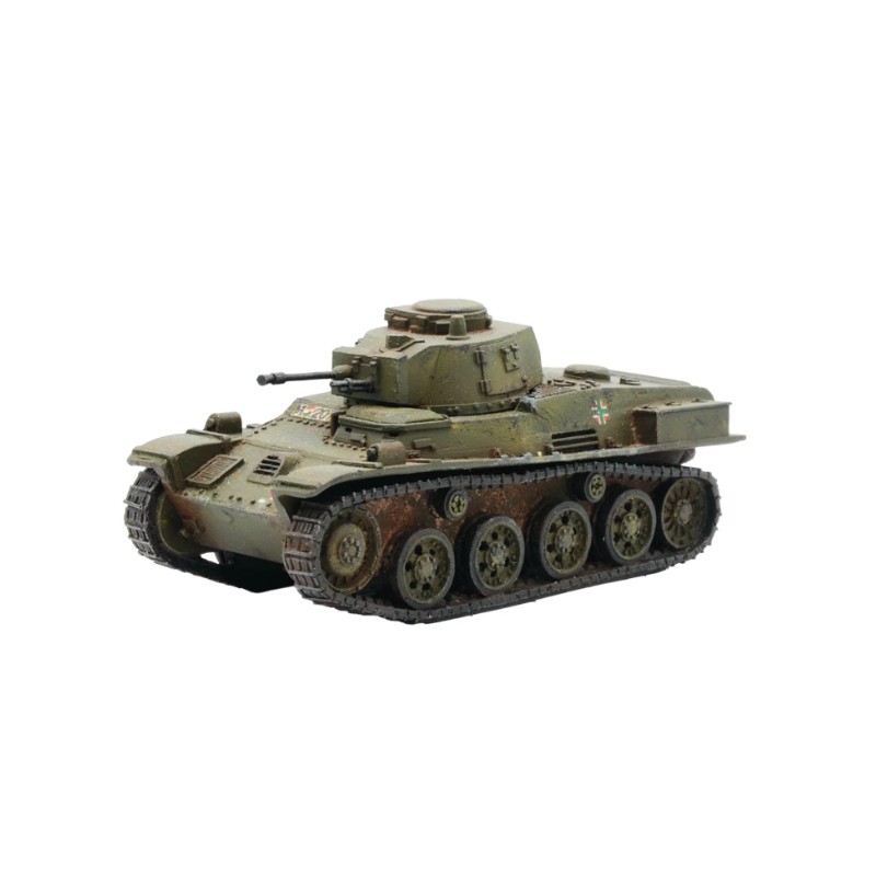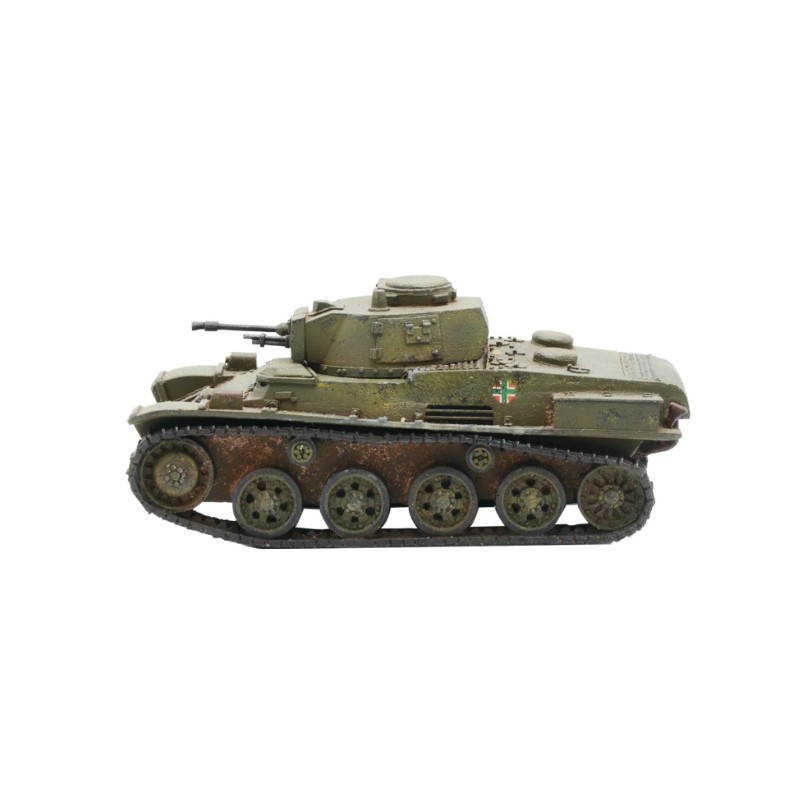 Le Toldi I hongrois était basé sur un char léger suédois et est entré en service en 1940. Armé d'un fusil antichar Solothurn de 20 mm, il était parfaitement capable de faire face aux types de chars légers courants à ce stade de la guerre. Le Toldi II était essentiellement un perfectionnement de ce modèle, avec un moteur plus fiable, une suspension plus solide et un confort accru pour l'équipage dans la tourelle. Le Toldi II s'est avéré être un véhicule incroyablement robuste et fiable. Il a continué à jouer un rôle de reconnaissance légère et d'entraînement longtemps après que l'introduction de véhicules plus lourds l'ait rendu obsolète dans la ligne de bataille principale. Un excellent choix pour un peloton blindé hongrois à la recherche d'un soutien léger, en particulier dans les premières phases de la guerre, les Toldi I et II sont prêts à servir !
