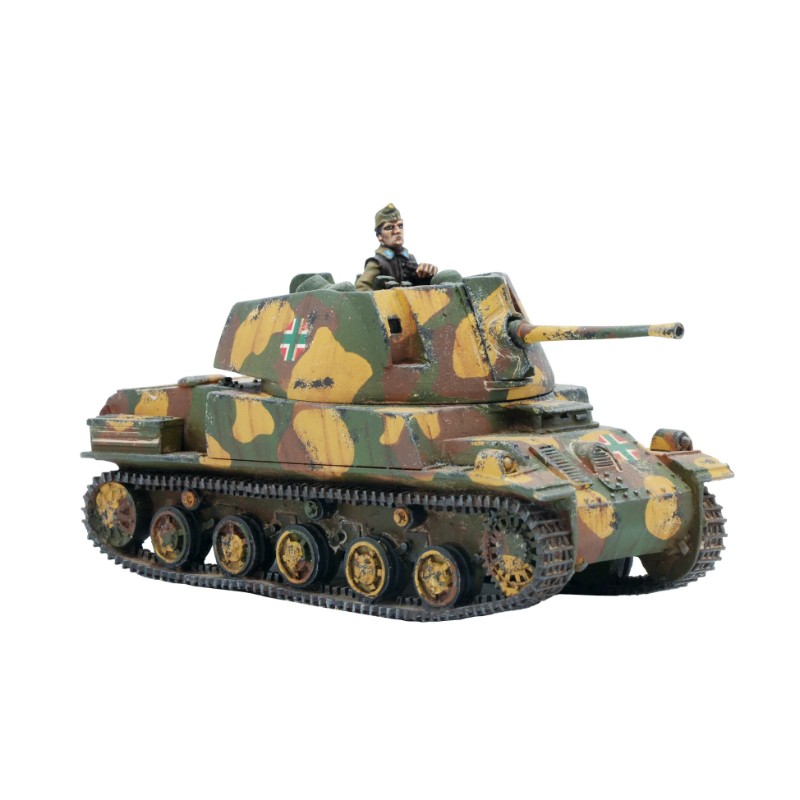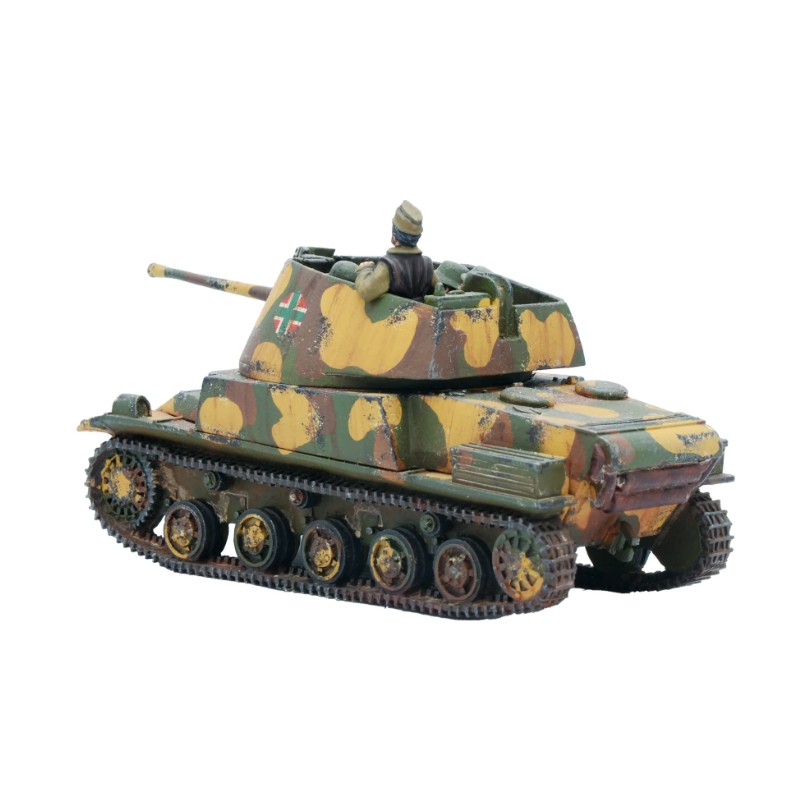 Le Toldi I hongrois était basé sur un char léger suédois et est entré en service en 1940. Armé d'un fusil antichar Solothurn de 20 mm, il était parfaitement capable de faire face aux types de chars légers courants à ce stade de la guerre. Le Toldi II était essentiellement un perfectionnement de ce modèle, avec un moteur plus fiable, une suspension plus solide et un confort accru pour l'équipage dans la tourelle. Le Toldi II s'est avéré être un véhicule incroyablement robuste et fiable. Il a continué à jouer un rôle de reconnaissance légère et d'entraînement longtemps après que l'introduction de véhicules plus lourds l'ait rendu obsolète dans la ligne de bataille principale. Un excellent choix pour un peloton blindé hongrois à la recherche d'un soutien léger, en particulier dans les premières phases de la guerre, les Toldi I et II sont prêts à servir !