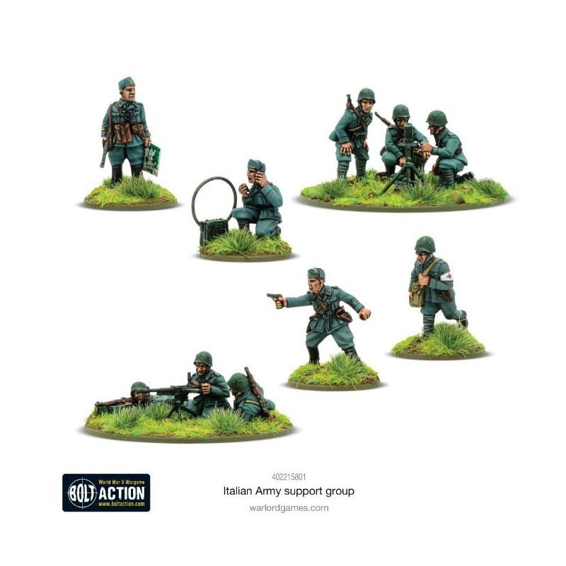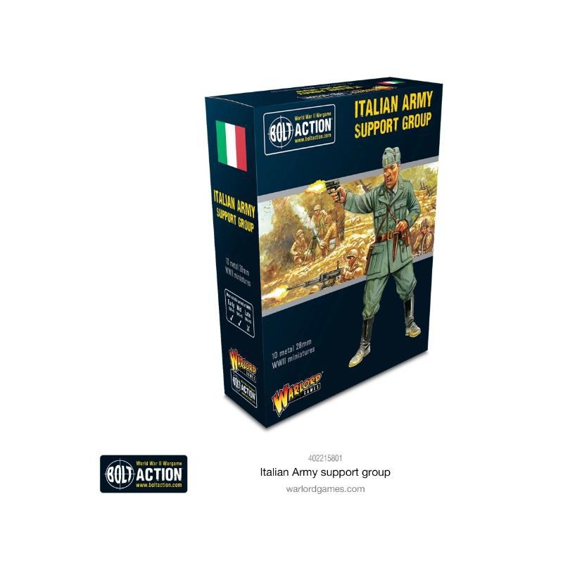 Contient les figurines en métal suivantes qui peuvent être déployées en tant que troupes de l'armée italienne ou des chemises noires :