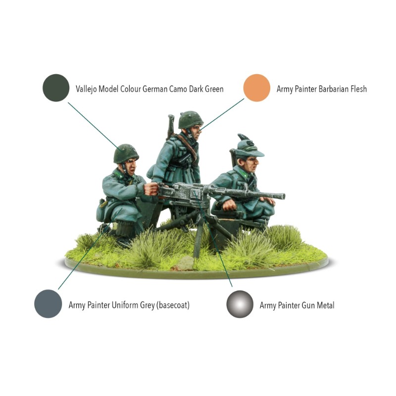 Vous pouvez aligner jusqu'à cinq équipes de mitrailleuses dans un même peloton d'armes lourdes. Une équipe de mitrailleuses moyennes est capable de tirer des rafales de feu dévastatrices, le fléau de l'infanterie ennemie prise à découvert.