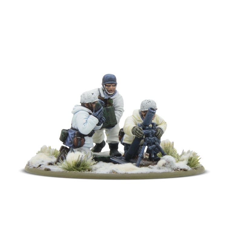 Contient un mortier moyen en métal avec trois Fallschirmjäger (hiver) en résine Warlord et un socle en plastique.