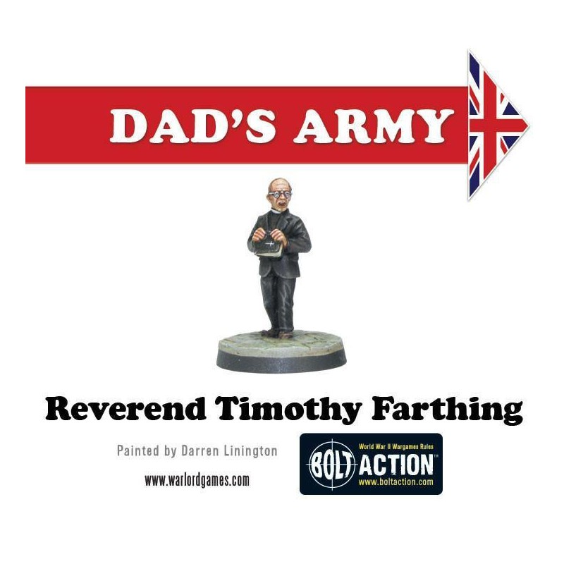 The boxed set contains 18 superbly detailed miniatures sculpted by Paul Hicks - representations of the cast of the classic TV series, Dad's Army in civilian and Home Guard attire! Included are Captain Mainwaring, Sergeant Wilson, Lance-Corporal Jones, Privates Pike, Walker, Frazer and Godfrey, plus Warden Hodges, the Verger and Reverend Farthing.