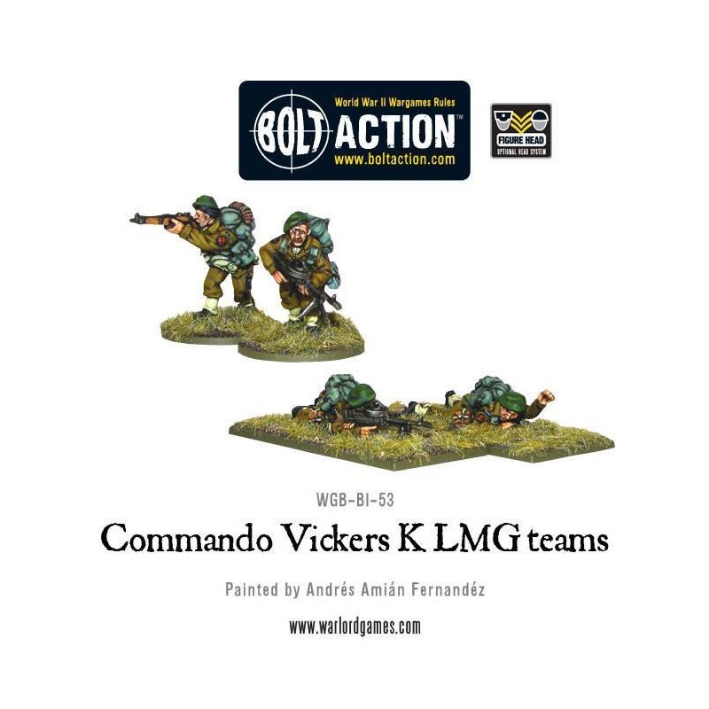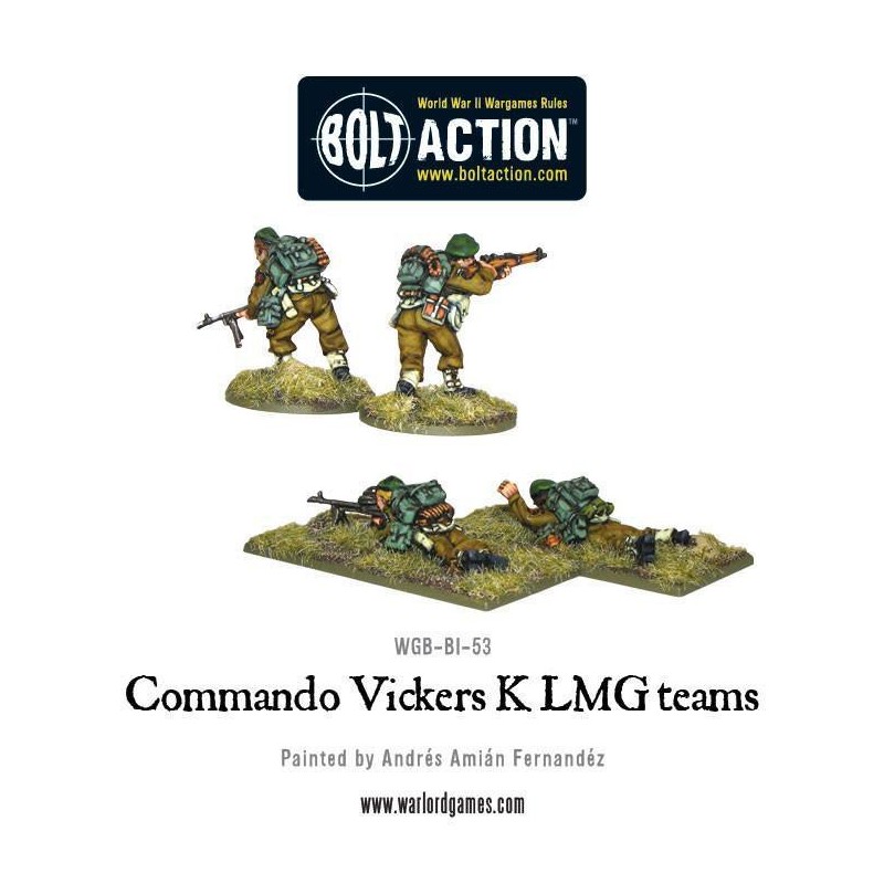 Description du produitPar leur nature de raiders spécialisés, les Commandos vont à la bataille légèrement équipés en termes d'armes. Cependant, ils ont fait bon usage des mitrailleuses Vickers K - anciennement des mitrailleuses montées sur avion - avec leur taux élevé de tir de suppression. Ces deux équipes comprennent un tireur Vickers K et son No 2 chargé de munitions supplémentaires.