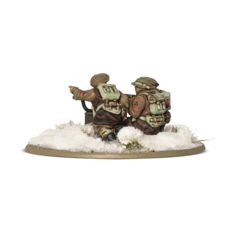 Véritable pilier des forces britanniques et du Commonwealth, la mitrailleuse Vickers a servi partout dans le monde, fournissant un appui-feu direct efficace depuis des positions défensives. Vétéran de la Première Guerre mondiale, la mitrailleuse Vickers refroidie à l'eau était capable de tirer de manière soutenue et précise, et s'est révélée mortelle lorsqu'elle était maniée par un équipage expérimenté. Cette mitrailleuse est manœuvrée par des hommes bien équipés pour les conditions hivernales, ce qui garantit que même le temps le plus froid ne la ralentira pas.