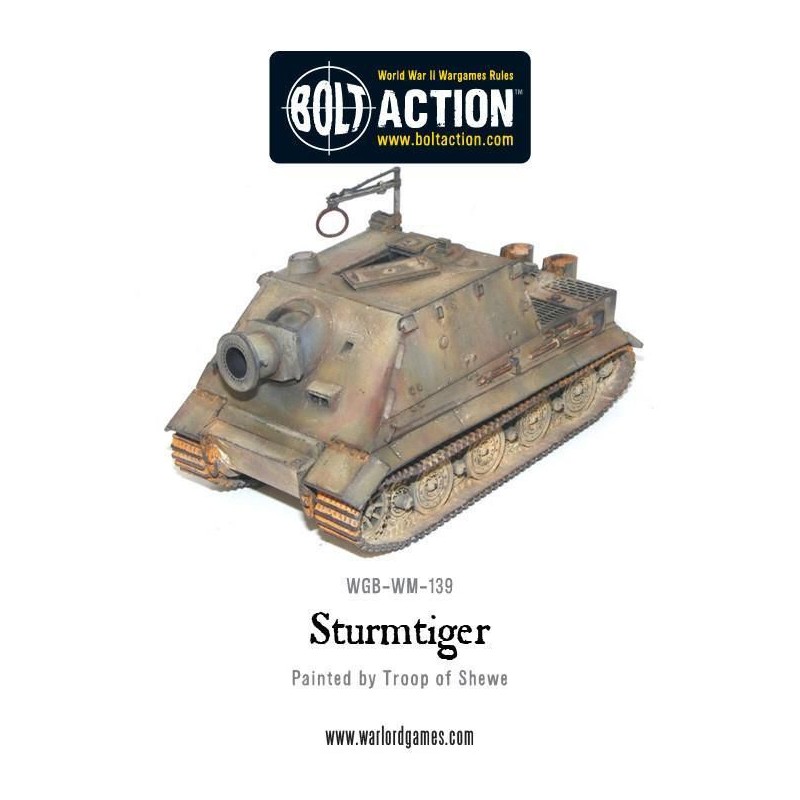 Description du produitThe fearsome Sturmtiger was designed to devastate towns. Armed with a naval rocket launcher not many were built but it did see action in the crushing of the Warsaw uprising, and on both Western and Eastern fronts from late 1943 onwards. It's vast bulk and heavy armour makes it a slow and ponderous beast.