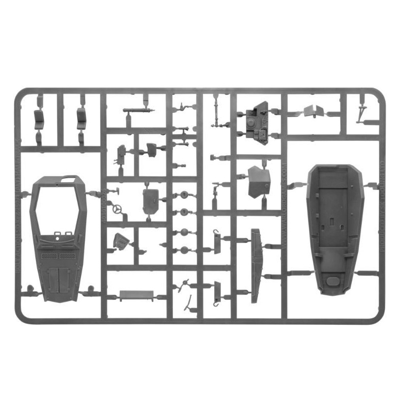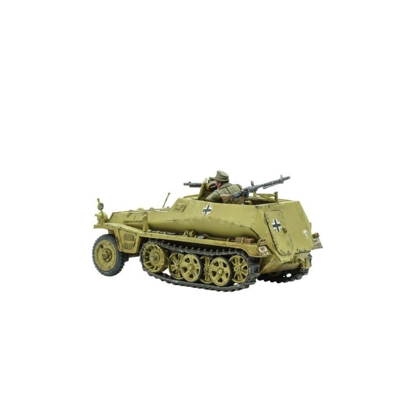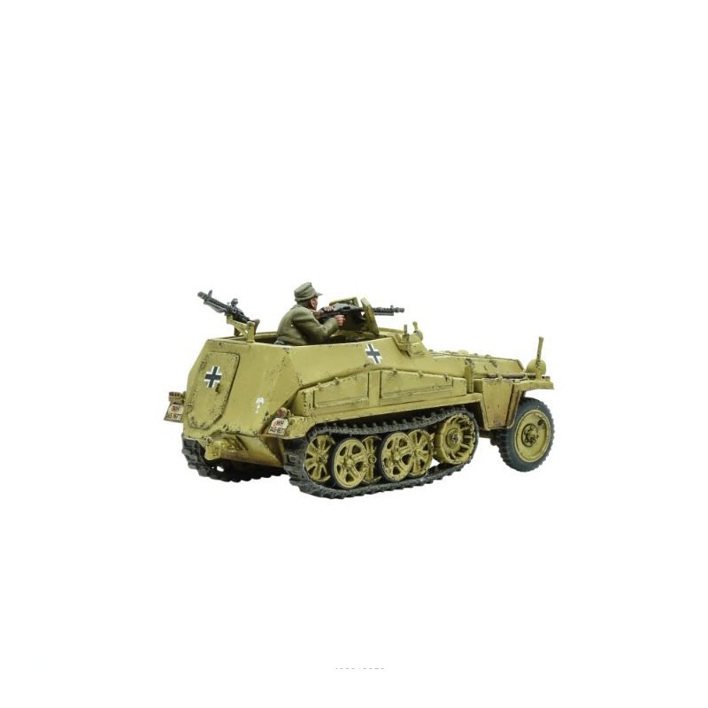 Description du produitLe Sd.Kfz 250/1 était un half-track de reconnaissance et de transport principalement utilisé par les unités d'éclaireurs et de QG. Le véhicule était une version raccourcie de l'omniprésent Sd.Kfz 251 Hanomag et, tout comme son cousin plus long, il existait de nombreuses variantes remplissant différents rôles, comme les transporteurs de câbles, les transporteurs de munitions et les transporteurs radio, entre autres. Il transportait six hommes, dont le conducteur et le copilote, et était armé de deux mitrailleuses MG34 montées sur pivot, l'une blindée face à l'avant et l'autre couvrant l'arrière et l'air.