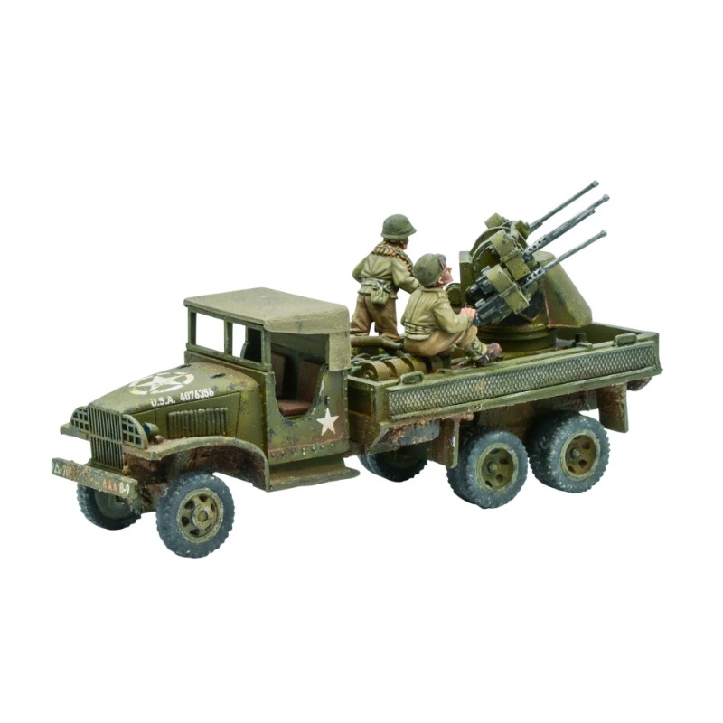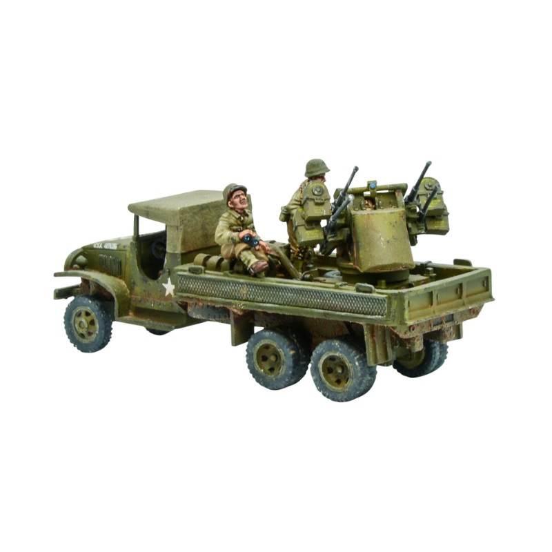 Description du produitPour fournir un soutien antiaérien mobile et une capacité efficace contre les cibles terrestres, l'armée américaine a monté la très efficace tourelle à canons multiples M45 Maxson de 50 mm sur le plateau d'un camion de deux tonnes et demie. Bien qu'encore en phase de test à la fin de la Seconde Guerre mondiale et n'ayant pas été en service actif pendant le conflit, les joueurs de Bolt Action peuvent désormais utiliser cette combinaison destructrice sur le plateau de jeu !