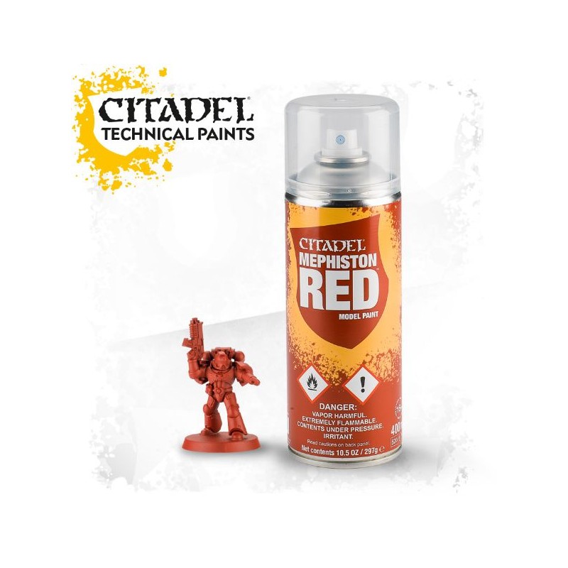 Description du produitLa bombe aérosol de Mephiston Red est conçue pour appliquer une couche de base sur toutes les figurines Citadel. Vaporisée après une sous-couche, c'est un moyen efficace d'obtenir une couleur de base uniforme sur vos figurines.