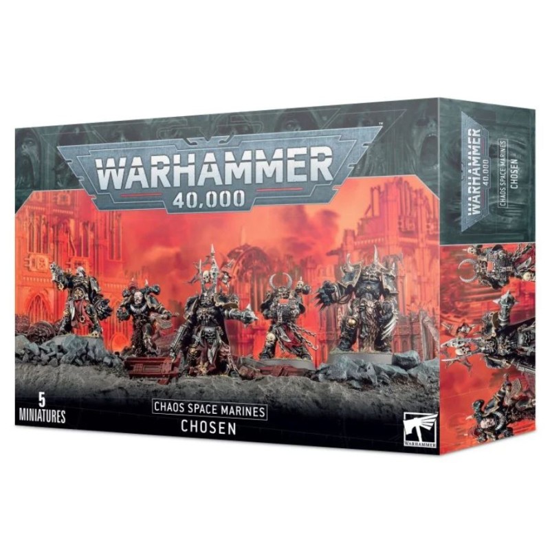 Ce kit plastique permet d'assembler cinq Élus, des guerriers space marines du Chaos endurcis qui mènent l'assaut sur les positions ennemies. Ces vétérans sont équipés d'une impressionnante variété d'armes de mêlées (des outils maudits prenant la forme d'épées ou de haches tronçonneuses, de gantelets énergétiques, de griffes Lightning et de toutes sortes d'armes énergétiques) ainsi que de pistolets bolters, de bolters et d'armes spéciales optionnelles destinées à éclaircir les rangs ennemis (deux pistolets à plasma et deux armes combinées, chacune avec trois différentes configurations : lance-flammes, fuseur, ou plasma). En plus de ces armes interchangeables, ce kit extrêmement personnalisable propose une grande variété d'éléments esthétiques interchangeables, dont cinq paquetages dorsaux, 10 épaulières et 13 têtes (avec ou sans casques) uniques, et divers accessoires, ainsi que des éléments permettant d'assembler un Champion Élu avec un choix de plastrons, de pagnes, de trophées et une icône du Chaos avec différents symboles de chaque Dieu du Chaos.