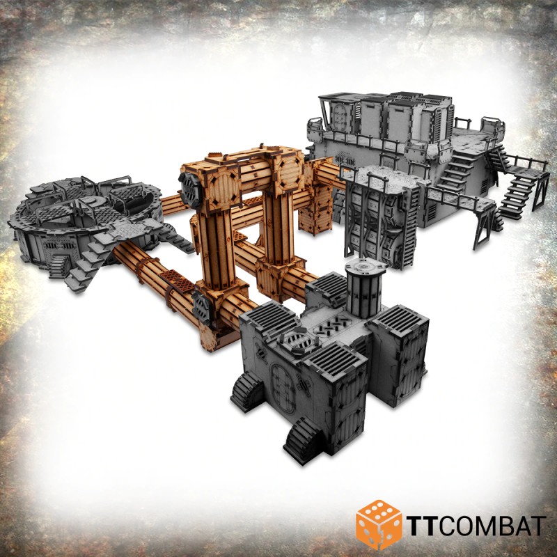 Le Secteur 4 - Pipelines est compatible avec tous les autres kits Industrial Hive, et chaque kit de la gamme Secteur 4 possède des points pour les connecter, ce qui signifie que vous pouvez créer un réseau tentaculaire entre les bâtiments, les hubs de tuyaux, et plus encore !