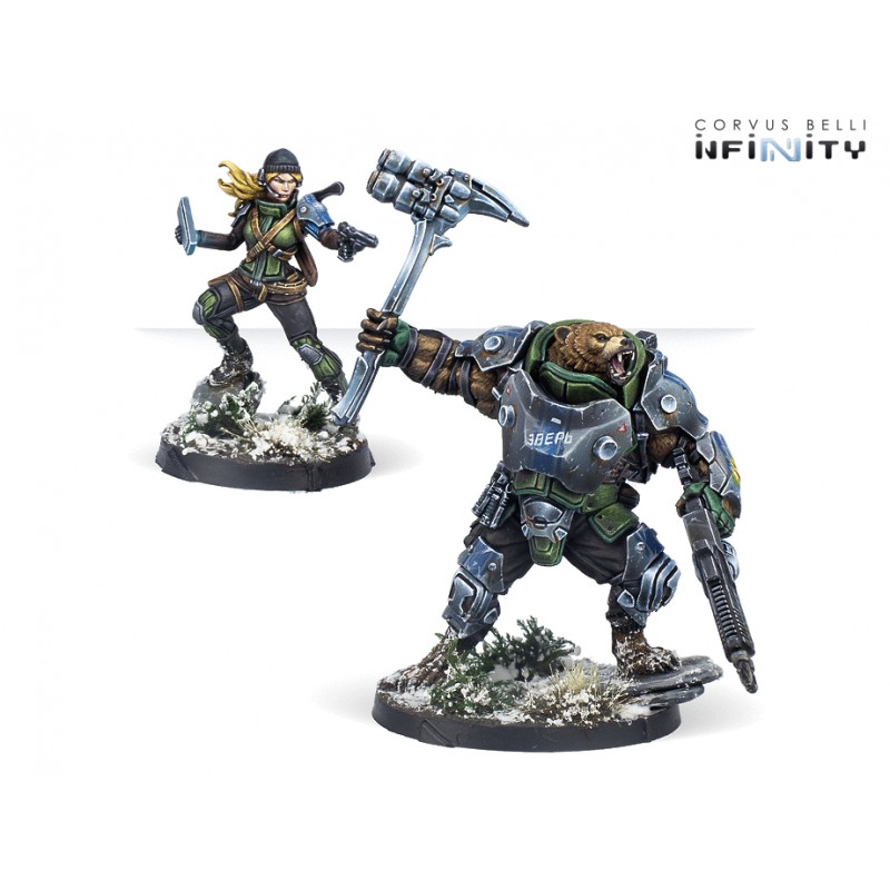 Ce coffret comprend deux figurines : une figurine en thermoplastique injecté d'un Polaris Bearpode et une miniature en métal de Masha, Polaris Controller. Ajoutez la sauvagerie et la brutalité de l'équipe Polaris à votre armée Ariadna.