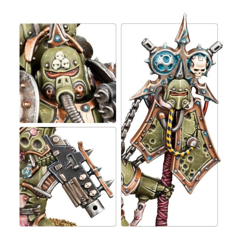 Description du produitVoués à Nurgle, les Plague Marines sont pourris, repoussants, et puent la décomposition. Le liquide putrescent qui suinte de leurs plaies corrode leur armure et consume leur peau, mais malgré leurs horribles défigurations, ce sont de redoutables guerriers. Leur cerveau moisi est insensible à la douleur de leur corruption physique, ce qui leur fait pratiquement ignorer la plupart des blessures.