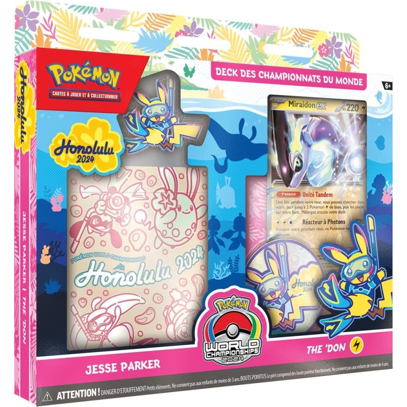 Description du produitPrenez en main un deck des Championnats du Monde et jouez comme un champion ! Choisissez l'un des quatre decks puissants, chacun étant une réplique exacte d'un deck d'un finaliste aux Championnats du monde 2024 du jeu de Cartes à Collectionner Pokémon à Honolulu.
