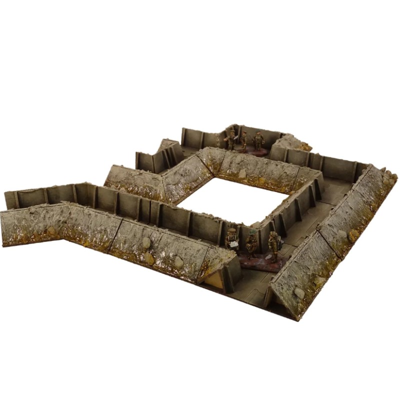 Le système de tranchées est adapté aux figurines de 20 mm, 28 mm et même 32 mm. L'ensemble comprend 18 longueurs de tranchées, une position de tir et des barbelés. La plupart des pièces de tranchées mesurent environ 10cm x 10cm, ce qui donne près de deux mètres de tranchées (qui peuvent être disposées en ligne droite pour couvrir 190cm, soit plus de 6 pieds).