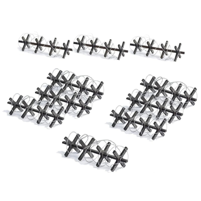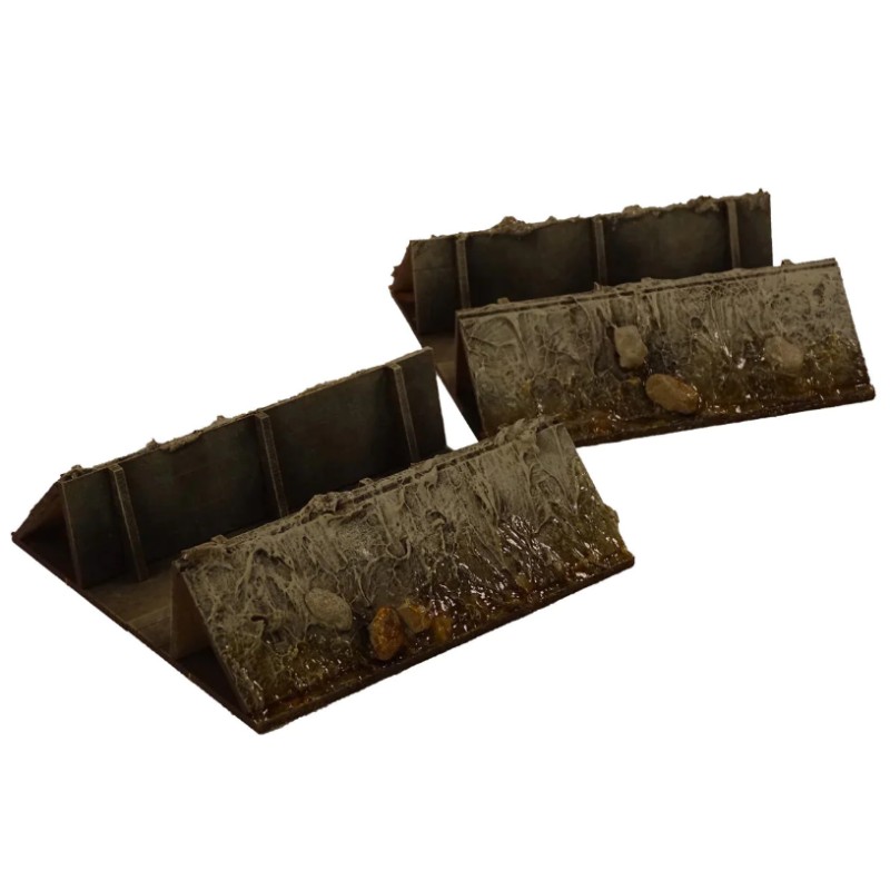 Creusez profondément et projetez la terre en hauteur ! Ajoutez vos sacs de sable et vos barricades en fil de fer barbelé. Simples à construire et rapides à mettre en place pour votre prochain scénario de bataille, ces tranchées sont une fortification idéale pour présenter la guerre des tranchées de la Première Guerre mondiale et d'autres théâtres de guerre en général.