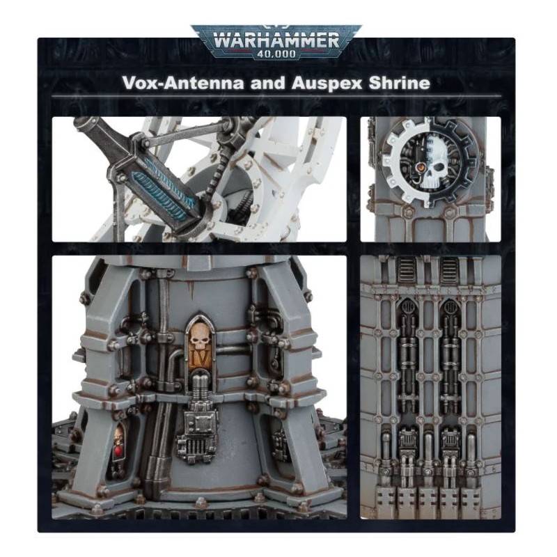 Description du produitBâtissez un champ de bataille immersif et faites la guerre sur une planète pionnière âprement contestée avec des terrains représentant de robustes structures impériales – comme une Antenne-vox et un Autel Auspex. Ces solides appareils sont un moyen de communication vital pour les mondes pionniers, et sont facilement réaffectés par les forces qui se battent pour s'en emparer – car ce sont des outils de motivation en téléchargeant de la propagande via l'Autel Auspex, ou de coordination d'un assaut dévastateur grâce aux diffusions de l'Antenne-vox.