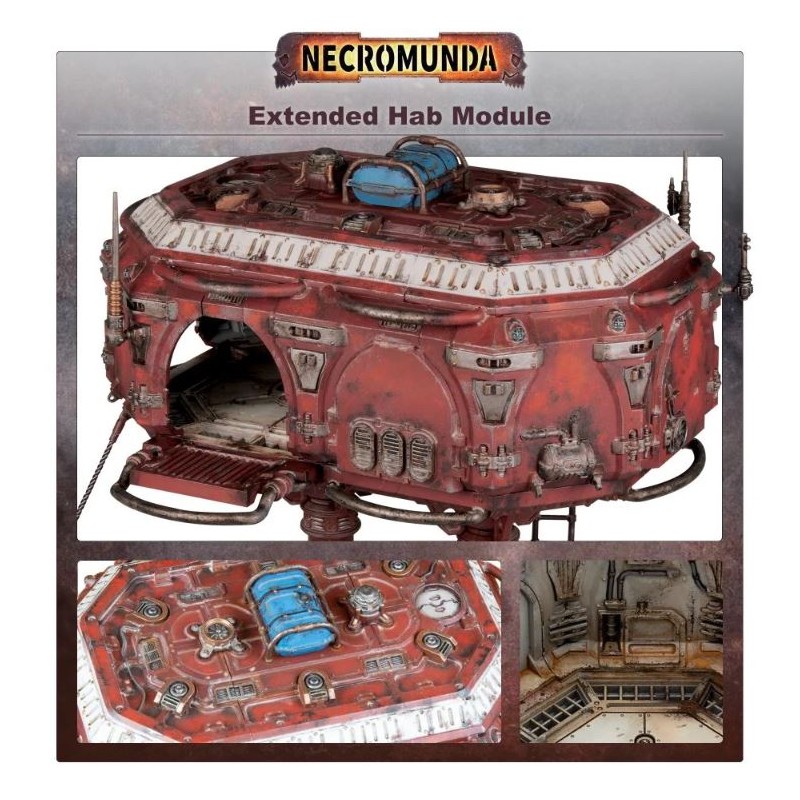L'Extended Hab Module est entièrement compatible avec tous les kits de terrain Thatos Pattern, vous permettant de bâtir, arranger, étendre un village modulaire ou un QG de gang adapté aux champs de bataille, scénarios, et campagnes de toutes sortes – plusieurs Extended Hab Modules peuvent même être combinés pour créer des tours de différentes tailles. Et vous n'avez pas à vous limiter à Necromunda – ce terrain est tout aussi adapté aux parties de Kill Team et de Warhammer 40.000.