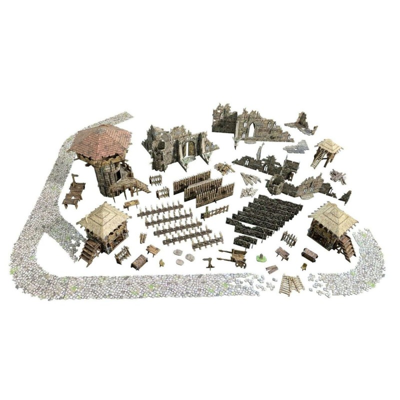 Description du produitCette boîte contient tout le terrain dont vous avez besoin pour une table de jeu complète représentant un champ de bataille déchiré par la guerre, adaptée à de nombreux jeux fantastiques et historiques de 28 à 35 mm. Vous pouvez emballer étroitement le terrain dans une petite planche d'escarmouche ou l'étaler sur une plus grande table. La plupart des pièces sont modulaires et peuvent être assemblées dans n'importe quelle combinaison de votre choix pour une configuration différente à chaque fois. Les toits sont amovibles et les bâtiments ont des intérieurs entièrement détaillés.