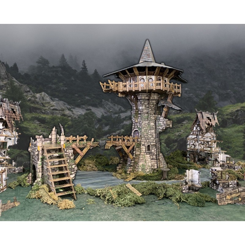 Description du produitCette boîte contient tout ce dont vous avez besoin pour construire une tour de sorcier tordue de 16 "/ 41 cm de haut, adaptée à de nombreux jeux fantastiques et historiques de 28 à 35 mm. Une véritable pièce maîtresse pour toute table. L'intérieur est entièrement détaillé avec un toit amovible et un étage supérieur, et il y a beaucoup de zones pour placer des figurines à différents niveaux.L'ensemble est livré avec des meubles magiques et un terrain dispersé pour accessoiriser votre table de jeu.