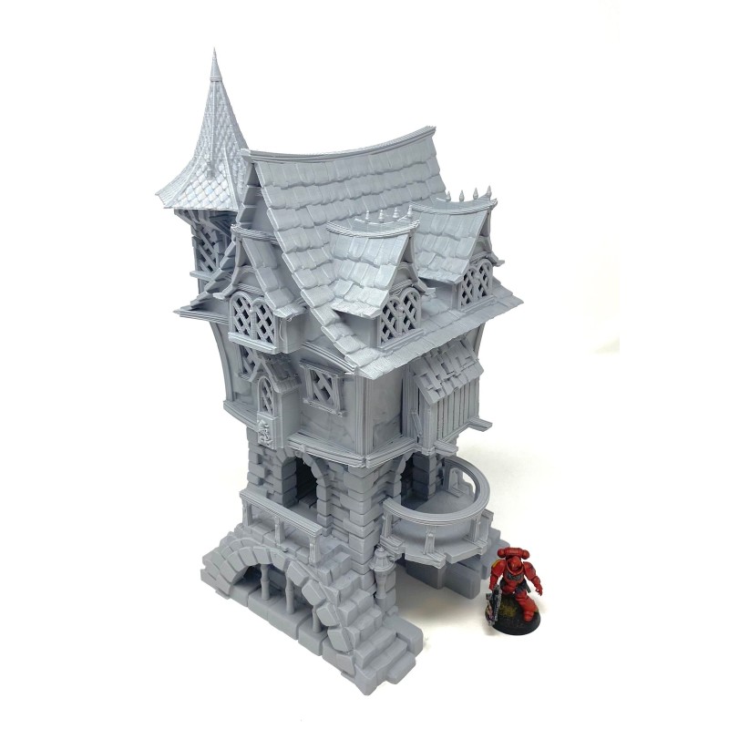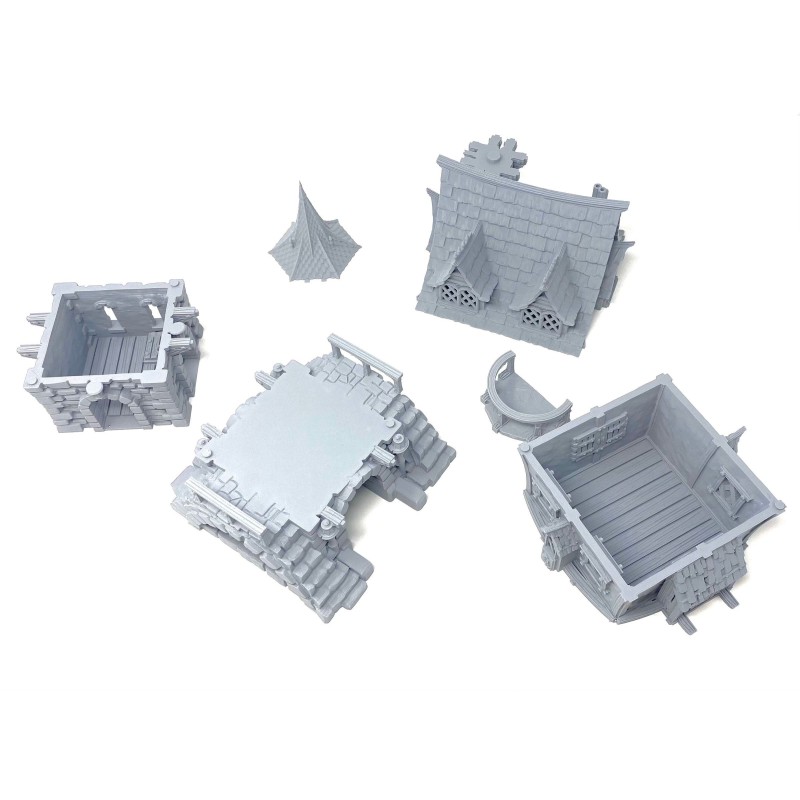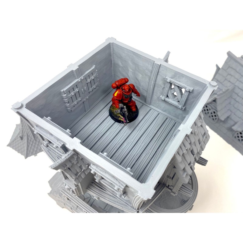 Description du produitMaison de ville imprimée en 3D, avec toit et étages amovibles et intérieur détaillé. Cette maison de ville au design complexe peut être utilisée comme élément de terrain pour votre jeu de table ou comme partie intégrante de votre village médiéval miniature. Dans tous les cas, elle attire tous les regards !