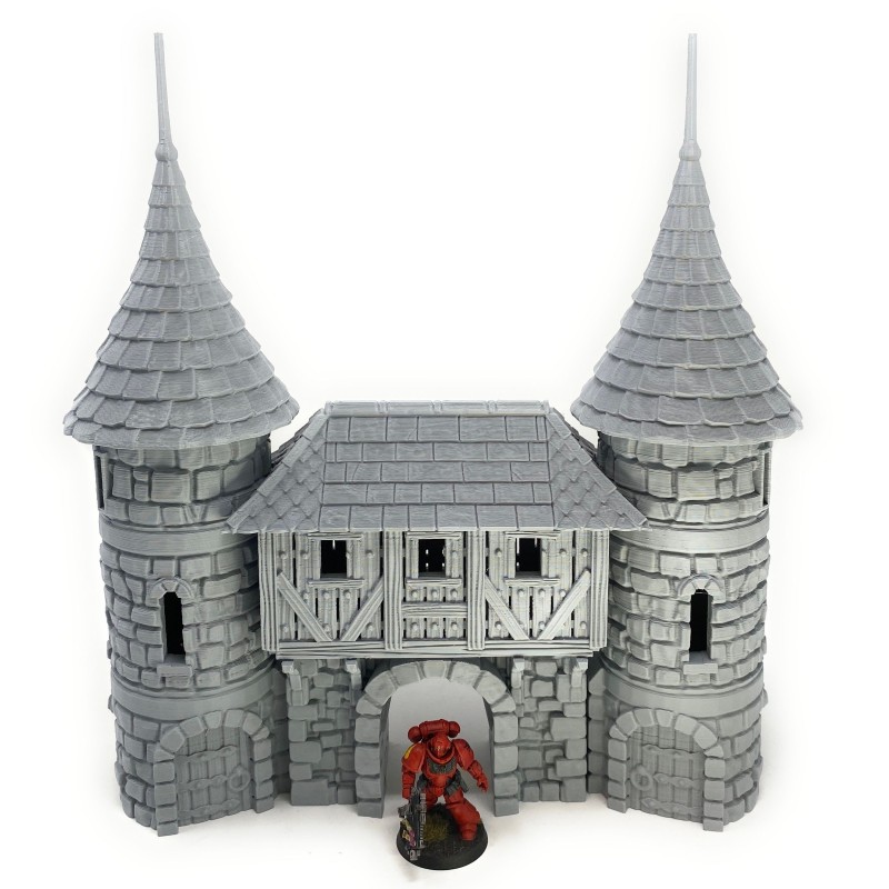 Description du produitPorte de ville imprimée en 3D, avec toit et niveaux amovibles et intérieur détaillé. La porte de ville au design complexe peut être utilisée comme élément de terrain pour votre jeu de table ou comme partie intégrante de votre village médiéval miniature. Dans tous les cas, elle attire tous les regards !